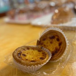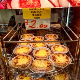 I came here last week and they were completely sold out of the Portuguese egg tarts everyone reviews about, but to my luck, a sweet colleague randomly brought them to work today! They were still warm and so, so, so delicious! The crust was flakey and buttery and the filling was sweet, but not overpoweringly so. It was perfect. Will definitely come back earlier in the day next time to try to score some of these Portuguese tarts!